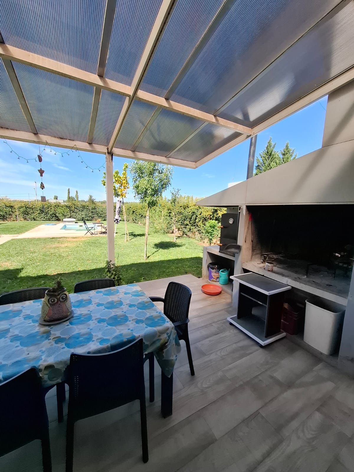 - Galería semicubierta con parrilla y horno